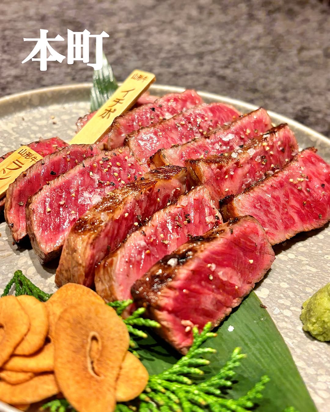 表面は香ばしくて中はミディアムレアで見た目も美しい✨